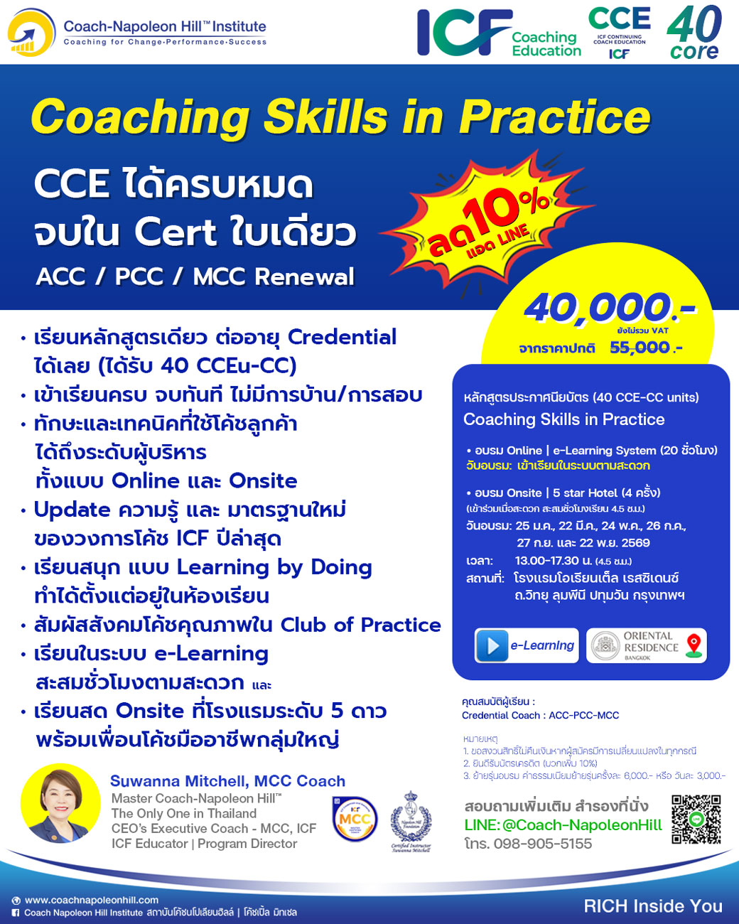 - Update ความรู้ และ มาตรฐานใหม่ของการโค้ชแบบ ICF ปีล่าสุด