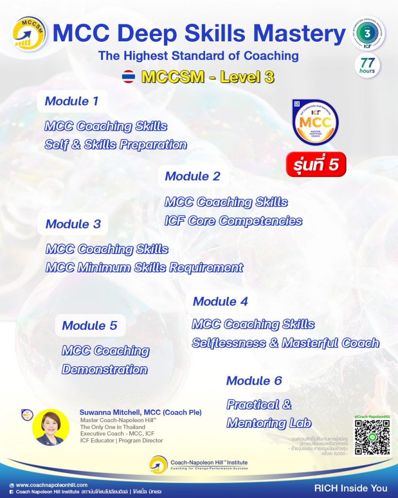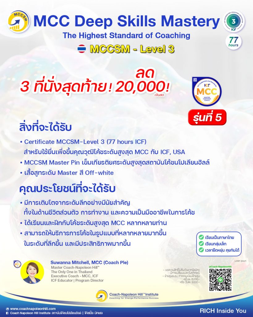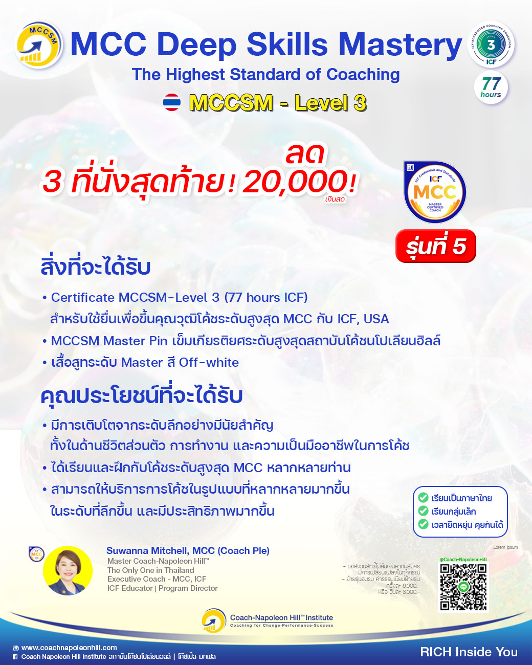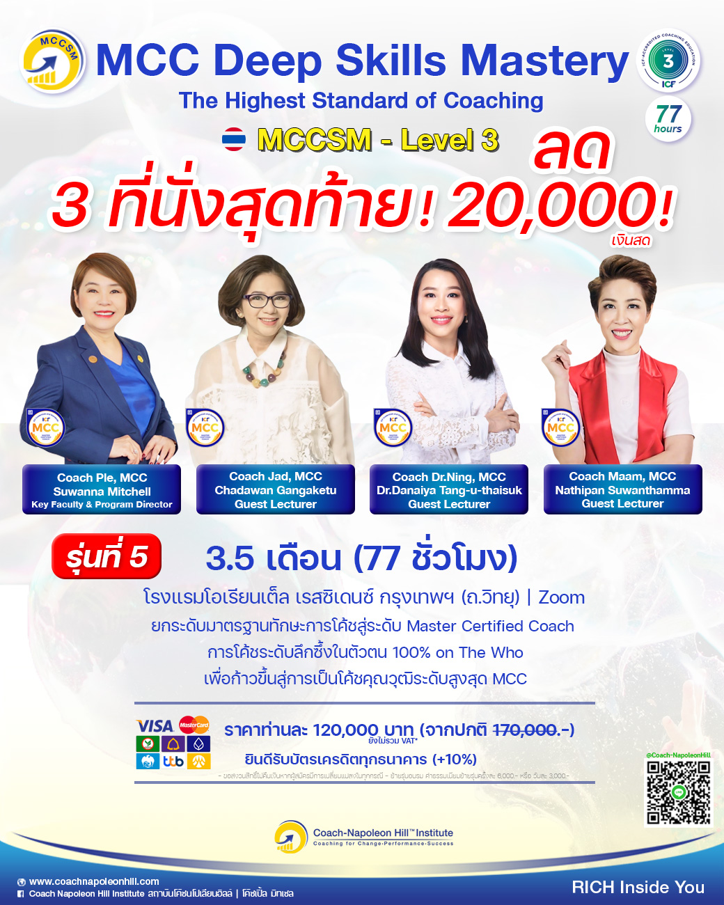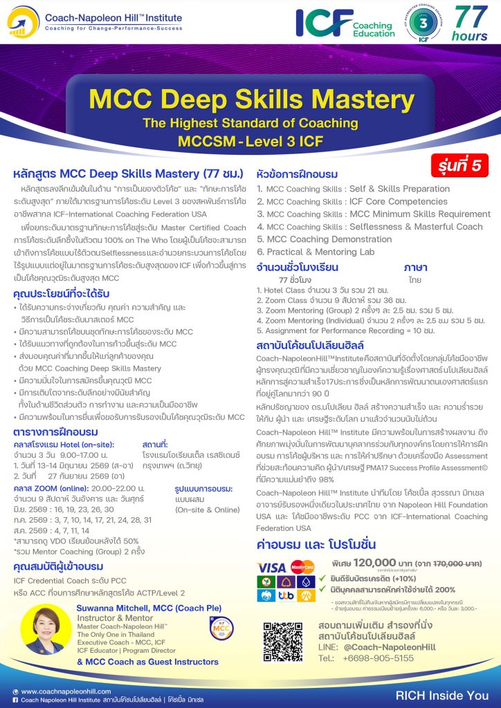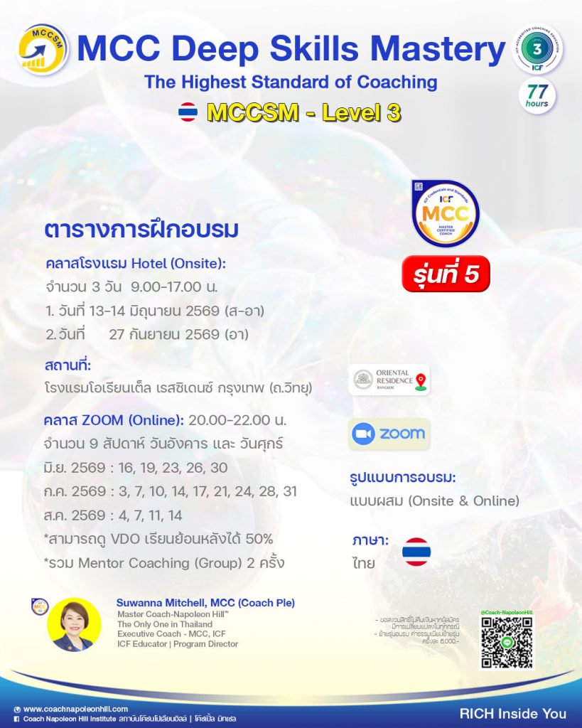 👉 หลักสูตร MCC Deep Skills Mastery Program (77 hrs – LEVEL 3, ICF) for MCC
