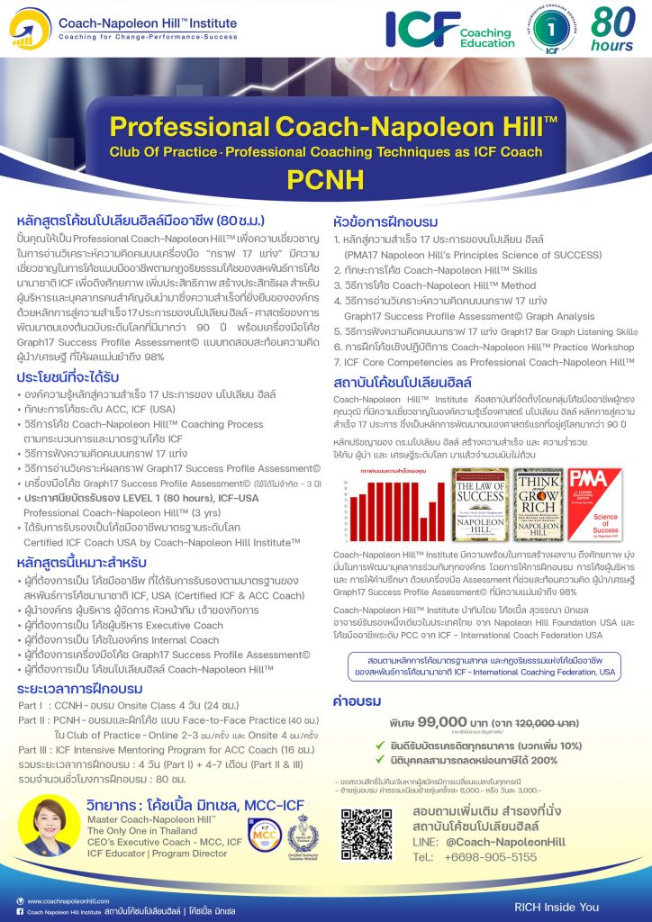 หลักสูตร Professional Coach-Napoleon Hill™ (80 hrs LEVEL 1, ICF)