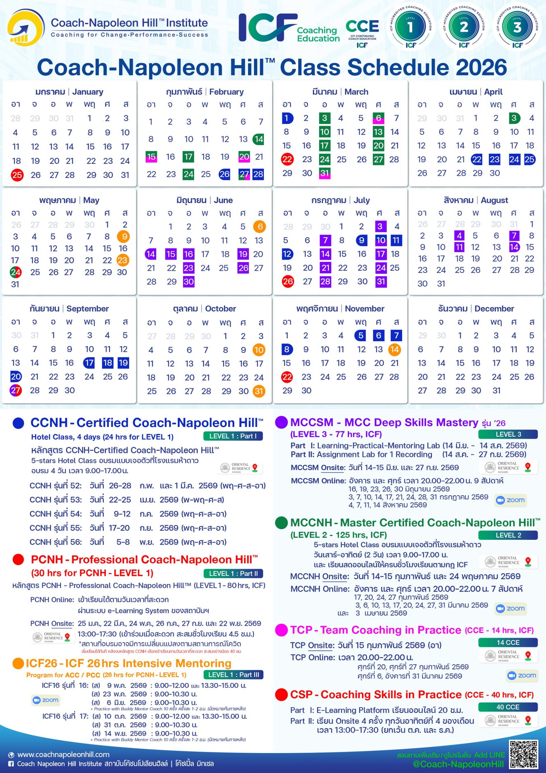 สถาบันโค้ชแห่งเดียวในประเทศไทยที่ได้รับการรับรองมาตรฐานหลักสูตรโค้ชคุณวุฒิจาก ICF, USA ครบวงจรถึงระดับสูงสุด LEVEL 3 (for MCC)